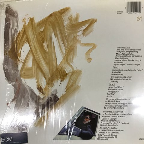 ドイツのサックス/シンセ奏者Ulrich P. LaskによるプロジェクトLaskの84年2ndアルバム。ECMのカタログの中でも明らかに異彩を放つ、ミニマルなエクスペリメンタル・エレクトロニック・ニューウェイヴ・サウンド。オリエンタルな感じも入ったこの独特のヘンテコさは他にありそうで無い!最高です!