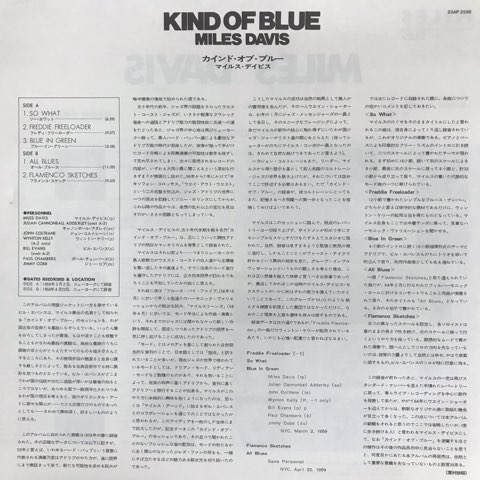 Gil Evansとのコラボレーション作品〜Bill Evansの協力を得て辿り着いたモード・ジャズのパイオニア的作品にして金字塔。1曲目「So What」の独特のイントロが終わりJimmy Cobbのシンバルとともに始まる、ビバップとは真逆の音数が少なくソフトながら緊張感バリバリのMilesのソロはこんなにカッコいいものもそうは無いと思わせるほどに鬼クール!!ほかにも聴きどころだらけのジャズ史だけでなく音楽史上に残る大傑作!