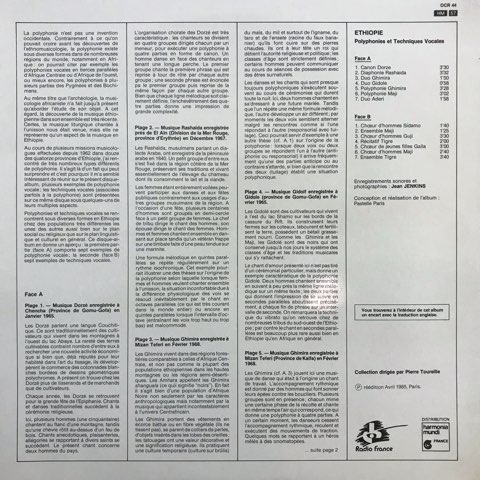 フランスの民族音楽名門レーベルOcoraによる東アフリカ、エチオピアの12の州に渡って様々な現地民族のヴォーカル・ポリフォニーを録音した一枚。原生的ながら複雑な響きに度肝を抜かれる衝撃の人声ミニマルの数々。これはヤバすぎです!!