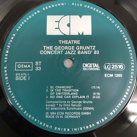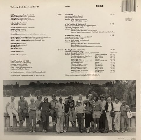 スイス人ピアニストGeorge GruntzがECMからリリースした総勢18名によるビッグ・バンド・アルバム。Dino Saluzzi、Bob Moses、Julian Priester、Charlie Mariano、Palle Mikkelborg、Howard Jonson、Mark Eganといった豪華メンバーが参加。Manfred Eicherのプロデュース力が光る、ECMカラーに染め上げたこの浮遊感溢れるビッグ・バンド・サウンドは他では聴けません!