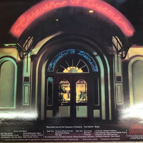 名作「Dancing in Your Head」「Body Meta」「Of Human Feelings」に引き続きバックにPrime Timeを率いてOrnetteの故郷であるテキサス州フォートワースに当時オープンしたばかりのパフォーミング・アーツ・センター「キャラバン・オブ・ドリームズ」のオープニング・コンサートでライブ録音した85年作。Ornette&Prime Timeが奏でる素っ頓狂で調子っぱずれなようでいてまとまっているアンサンブルはやはり唯一無二!この不思議な快感はOrnetteでしか味わえません。フリー・ジャズとかファンクとかのジャンルを超越した傑作ライブ!