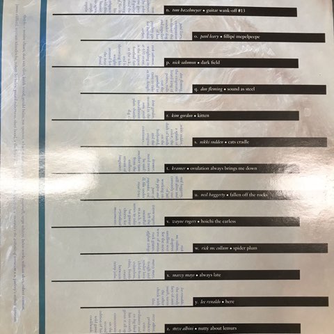 Sonic Boom(Spacemen3)、Wayne Coyne(Flaming Lips)、J Mascis(Dinosaur Jr)、Thurston Moore(Sonic Youth)などなど90年代オルタナティヴ・オールスターのようなメンツによるギター・インストゥルメンタルの書下ろしを収めた91年のコンピレーション。サイケデリック/アコースティック/ノイズ/アメリカーナなどバリエーション豊かな全26曲。
