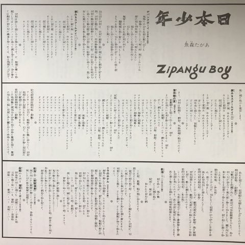 細野晴臣プロデュース、鈴木慶一とムーンライダーズ、矢野誠、矢野顕子、鈴木茂、山下達郎や大貫妙子が参加したあがた森魚の76年作。少年による時代も場所も超越した世界一周音楽絵巻という壮大なコンセプト・アルバム。スティール・ギターとシンセサイザーが妖しく揺れる「ヴヰクトリアルの夜」、「ハリー細野 & TIN PAN ALLEY IN CHINATOWN」でもセルフ・カバーしていた「つめたく冷やして」、サイケな音響処理が施された「ノオチラス艦長ネモ」から彼岸に到達する「彩光∞無限」など、「泰安洋行」制作時という一番ぶっ飛んでいた頃の細野晴臣の世界が濃密に反映された2枚組の大作。