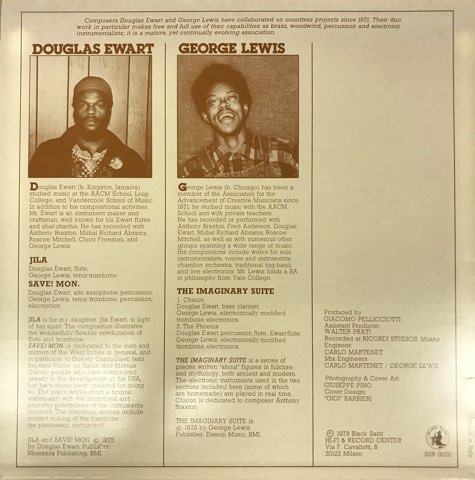 イタリアの前衛ジャズ・レーベルBlack Saintから79年にリリースされた、ともにシカゴのフリー・ジャズ集団AACMでも活動するトロンボーン/エレクトロニクス奏者George Lewisとリード奏者Douglas Ewartのデュオ・アルバム。電化トロンボーンやエレクトロニクスも取り入れお互い奇妙な音を繰り出し展開していくフリー・インプロヴィゼーション作品。エレクトロニクスと打楽器による音響宇宙作品「Save ! Mon.」、ドローンのような電化トロンボーンによるアンビエント・トラック「The Phoenix」、George Lewisの左右から出没する音の定位にもこだわられたエレクトロニクスがDouglas Ewartのバスクラと交錯する「Charon」など。