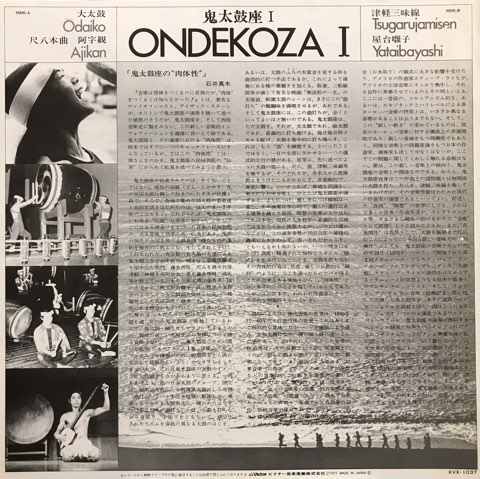 69年に座長の田耕によって佐渡で結成された日本が世界に誇る和太鼓集団、鬼太鼓座の77年1st。地鳴りのように太鼓が響く、鬼太鼓座の代名詞的存在の「大太鼓」、太鼓乱れうちの「屋台囃子」など、日本のプリミティヴな伝統音楽を現代音楽/アヴァンギャルド的に解釈した和太鼓アンサンブルと尺八、三味線によるミニマルでトラシーな演奏が強烈!そしてその強烈さを何倍にも高めている振動まで捉えたような鮮烈な録音がまた素晴らしくオーディオ・マニアにも人気の一枚です。是非爆音で!