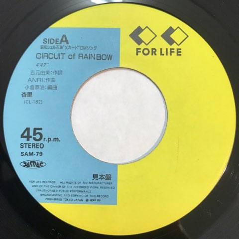 アナログはプロモオンリーの89年アルバム『Circuit Of Rainbow』からこちらもプロモオンリーでカットされた「Circuit Of Rainbow」「Groove A-Go-Go」収録の7インチ・シングル・レコード。両面シティポップ、メロウ・ブギー名曲のダブルサイダー盤。