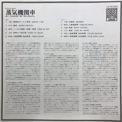 音質において高クオリティを誇るプロ・ユース・シリーズの蒸気機関車編。至る所にノイズ/インダストリアル/テクノばりの音が収録されてますが、その中でも客車より録音されたA4は完全にアヴァンギャルド・ミュージックとして聴けるほどのえげつなさ!!