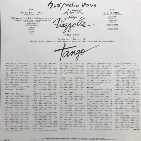 タンゴの革命者Astor Piazzollaの83年にベルギーで開催された第5回ギター・フェスティバル出演時の実況録音盤。ここで初演されたスリリングに展開していくPiazzolla節が炸裂の「ギターとバンドネオンの為のコンチェルト」が震えるほどのカッコよさ!哀愁の「タンゴの歴史」も◎。