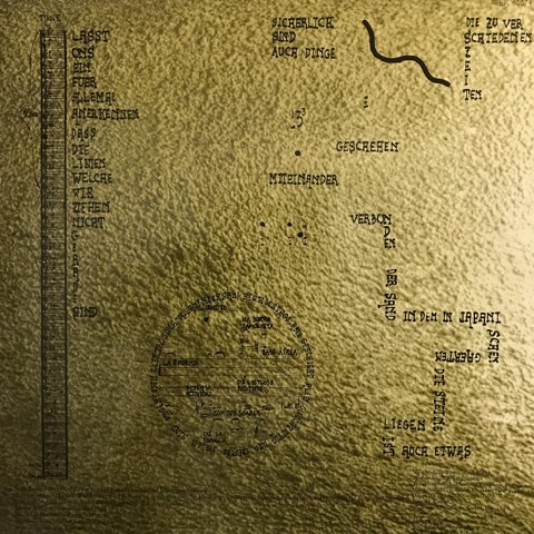 前衛音楽を代表するアメリカの作曲家John Cageが75年6月22日シュトゥットガルトで行ったコンサートの音源を収めたライブ盤。A1、2はPeter Roggenkamp演奏によるプリペアド・ピアノのための「Sonata XIII」「Music For Marcel Duchamp」を、A3〜B面には「Song Books I-II / Empty Words III」を収録。プリペアド・ピアノは浮遊感のある音色が素晴らしい名演。そして「Song Books I-II / Empty Words III」が激ヤバで、Cageのつぶやきとベルカント唱法によるヴォイスにタイプライター、靴音や口琴、電子音が交錯しカオスながらどこかコミカルな音場を創り出しています。面白い瞬間がありすぎて視聴部分どこにするか迷いました。