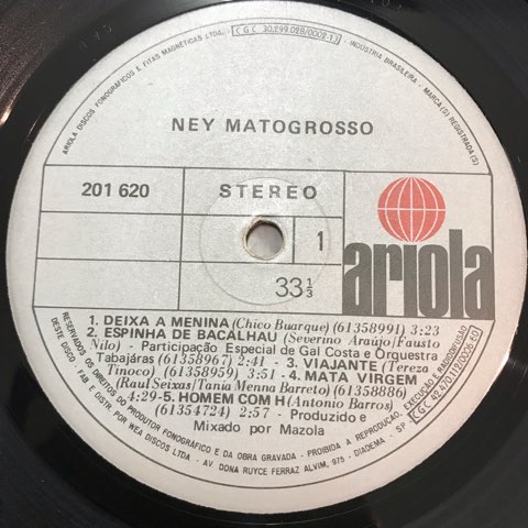 その個性的なキャラクターや歌唱で知られる、ブラジルのサイケデリック・バンドSecos e MolhadosのヴォーカリストNey Matogrossoの81年作。ジャケットもだいぶヤバイ感じですが、今作はブラジリアンAOR「Vida Vida」筆頭にメロウで爽快感のあるアルバム。今からの季節に最高です!