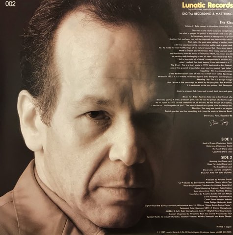 ポスト・フリーを追求し続けた孤高のソプラノ・サックス奏者Steve Lacyが86年来日時に行ったソロ・ライブ録音で構成された87年作。Thelonious Monkに強い影響を受けた、思索的でシニカルなユーモアも感じられるSteve Lacy特有の曲がりくねったソプラノは本当に独特!Steve Lacyの世界にどっぷり浸れる一枚です。日本オンリー盤のため海外からも人気の作品。