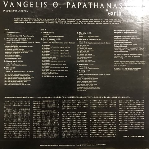 ギリシャのシンセサイザー奏者/作曲家VangelisがまだVangelis O. Papathanassiou名義だった73年初期作品。文句なしにカッコいいバレアリック・クラシック「Let It Happen」、ニューエイジ・トラック「My Face In The Rain」、エスノ・メディテーティヴな「We Are All Uprooted」など素晴らしいです。