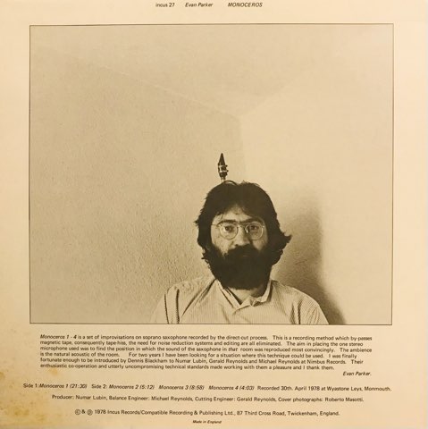 Derek Baileyらが設立したレーベルIncusから78年にリリースされたEvan Parkerのソプラノ・ソロ作品。様々な奏法を駆使しソプラノ一本で他に類を見ないほどに豊穣な音世界を創り上げたフリー・インプロヴィゼーション・クラシック。聴いているとミニマル・ミュージック、音響、雅楽、鳥やイルカの鳴き声、電子音楽なんかのキーワードが浮かんでくる、変わった音や聴いたことがない未知の音を探している人にはこれ以上ない一枚。名盤!