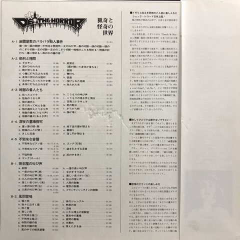 オリジナルはイギリスの公共放送局BBCのレコード部門BBC Recordsから82年にリリースされたエグイ音ばかりを集めた効果音集。「狂ったゴリラ」「不協和音」「泥の中を歩く」「狂人の笑い声」「ジキル博士の実験室」「水責め」「煮えたぎる油」などタイトルだけでそそられます!アヴァンギャルド好きに是非!
