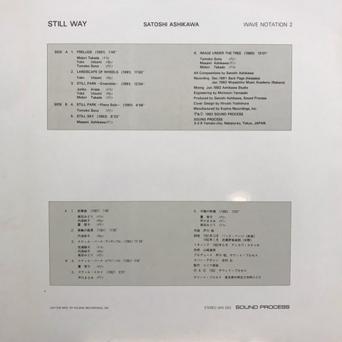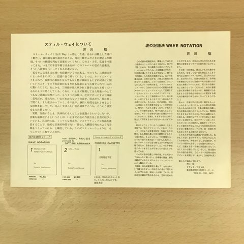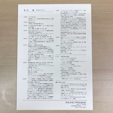 伝説の美術書専門書店アール・ヴィヴァン勤務を経て82年にサウンド・プロセスを設立し吉村弘やOscilation Circuit、柴野さつきなども手掛け、30歳の若さで夭折した日本のアンビエント・ミュージックの最重要人物の一人、芦川聡の82年作。Erik Satie、Brian Enoや現代音楽、ミニマル・ミュージックなどにその音色や音と音との間隔など日本的美意識を反映させた、間違いなくジャパニーズ・アンビエント最高峰の一枚に数えられる大傑作。