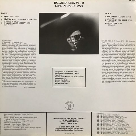 盲目の鬼才ジャズ・ミュージシャンRolan Kirkの1988年にリリースされた70年フランス・パリでの未発表ライブ盤。スピリチュアルな16分越えの「Sweet Fire」、循環奏法で吹きまくる「Volunteered Slavery」、そして何と言っても複数の楽器を同時に吹いたり、吹きながら同時に歌う特殊奏法やベルの音まで出てくる「You Did It, You Did It」が圧巻!