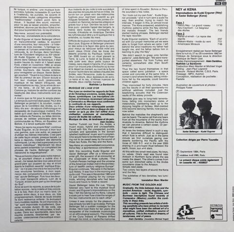 民族音楽の現地録音で評価の高いOcoraですが、こちらは民族音楽ではなく民俗楽器を用いて新しい音楽を創造していくという、Ocoraが新しい境地に入ったといえる84年作。トルコの葦笛ネイとペルーの木管楽器ケーナの即興演奏を収録しており、録音場所であるセナンク修道院の天然リバーブのような深い残響音によって、柔らかで少し掠れた二本の笛の音が溶けて混ざり合いディープでメディテーティヴ、サイケデリックでアンビエントな音場を創り出しています。これは凄い!