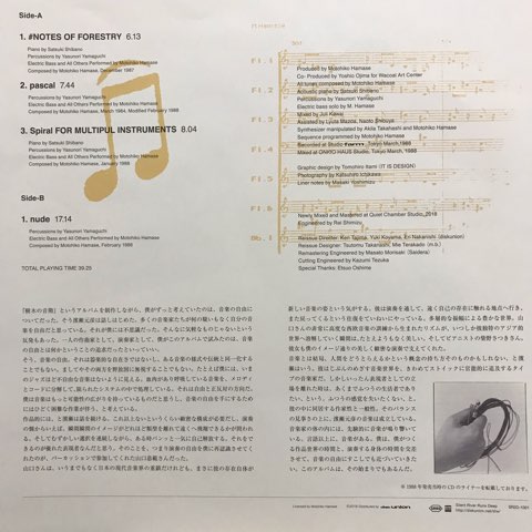 現在世界中から再評価されている異能ジャズ・ベーシスト濱瀬元彦がCDオンリーでリリースした88年3rdアルバムを2018年に初アナログ化した限定再発盤。尾島由郎を共同プロデューサーに迎え、ピアニストの柴野さつき、パーカッショニストの山口恭範も参加。Steve ReichやJon Hassellなどの影響を昇華したジャパニーズ・ミニマル/アンビエント/ニューエイジ傑作。