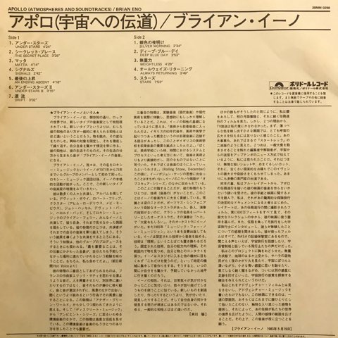 Brian EnoとDaniel Lanoisの初コラボ作となる83年作。Al Reinert製作のドキュメンタリー映画「アポロ計画」のサウンドトラックとして作られたアルバムですが完全にこの時期の一連のアンビエント・シリーズ作品として聴ける一枚。ハイライトの「An Ending (Ascent)」、完全無重力状態の「Stars」などフローティングな魅力に満ちた傑作です。