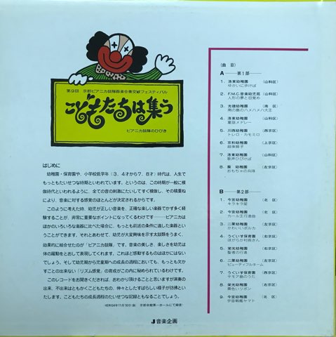 1979年11月16日、京都会館第1ホールにて行われた京都市の幼稚園児による演奏会「第11回 京都幼児ピアニカ鼓隊 器楽合奏交歓フェスティバル」の模様を収めたレコード。幼稚園レコードの醍醐味、作為の一切ないピュアなズレやカオスが聴けます。The Shaggs、Maher Shalal Hash Baz、The Portsmouth Sinfonia、49 Ameriacansなんかが好きな人に是非!