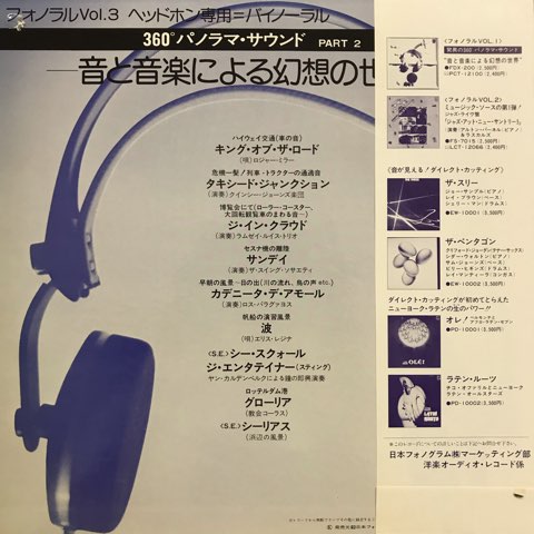 当時流行った人間の聴覚と全く同じ状態で録音されたというバイノーラル録音によるフィールドレコーディングと既存の音源を組み合わせたレコード。帆船の演習風景となんかギターのミス音?みたいなのも入るElis Regina「Wave」のミックスや、町の雑踏と鐘の即興演奏のコラージュなど聴きどころ満載です。フィールドレコーディングの部分は確かに臨場感が凄い!あとジャケットがだいぶヤバいです!