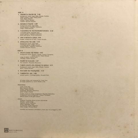 ユーミンの74年2ndアルバム。前作に引き続きバックの演奏は細野晴臣、松任谷正隆、鈴木茂、林立夫のキャラメル・ママ。ユーミンによる歌詞、楽曲の良さはもちろんそれを何倍にも引き立てる、どれだけ音量をあげてもうるさくならないキャラメル・ママのレイド・バックした演奏や録音も本当に素晴らしい!爆音で聴くと最高に気持ちいいです。1stと並ぶ大傑作!