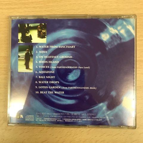 2019年の名アンビエント・コンピ『Kankyo Ongaku』に音源が収録され2022年には90年作『Natural Sonic』が再発された、三宅一生コレクションの作曲・パフォーマンスやTV、ラジオの楽曲制作などで知られるパーカッショニスト越智義朗の98年作。音数の少ないエフェクトがかったカリンバと水の音、そしてDream DolphinのNorikoによるささやきヴォイスで悶絶必至の激ヤバ・アンビエント「Water From Sanctuary」、完璧なニューエイジ「Aqua」の1,2曲目の流れで傑作確定!水の音とシンセの共演「Water Drops」ほか内容最高です!