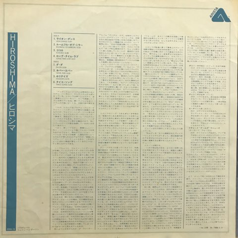 アメリカの日系三世を中心としたフュージョン・グループHiroshimaの80年1stアルバム。和楽器を取り入れたフュージョンというとイマイチなイメージしか湧きませんが笑、Wayne Hendersonのプロデュース力なのか琴なんかの取り入れ方がめっちゃ絶妙です。「Roomful Of Mirrors」、「Never, Ever」、「Holidays」ほかメロウ好きは昇天必至の名盤。