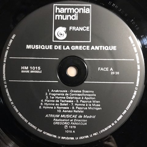スペインの古楽研究家・古楽演奏家であり、現在再評価著しい80〜90年代のスペイン・ニューエイジ・シーンの重要人物、Luis Paniaguaの兄弟でもあり、そのLuisも参加している古楽アンサンブル楽団「アトリウム・ムジケー古楽合奏団」を率いるスペイン・コンテンポラリー・シーンの親玉、Gregorio Paniaguaの代表作の一つ「古代ギリシャの音楽」。針を落とした瞬間に異常な音の良さで鳴り響く強烈な不協和音の塊から始まる、古代ギリシャで演奏されていたであろう音楽を楽器も含めて再現したというGregorio Paniaguaの妄想的前衛性が爆発した傑作。ブックレットに自作復元楽器の写真がありどれも架空の民族楽器のような奇妙な形をしていてそれも最高です。