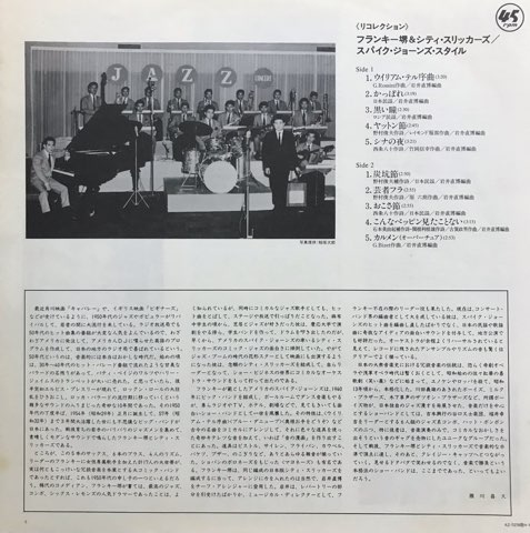 コメディアン/俳優/ジャズドラマーなどマルチに才能発揮していた昭和を代表する人物の一人、フランキー堺がアメリカ冗談音楽の王様Spike Jones & His City Slickersに影響され1954年に結成したコミック・ジャズ・バンド、フランキー堺とシティ・スリッカーズの音源を大滝詠一監修のもとに集めた86年コンピレーション。ピストル、サイレン、フライパン、カウベル、バケツ、ブザー、のこぎりなども使ったオーケストラによる、クレイジー・キャッツや大滝詠一はもちろん、タモリの音楽作品や大友良英&あまちゃんスペシャルビッグバンドなんかにもその影響が見え隠れするユーモアに溢れた実験サウンドが詰まってます。サイコーです!