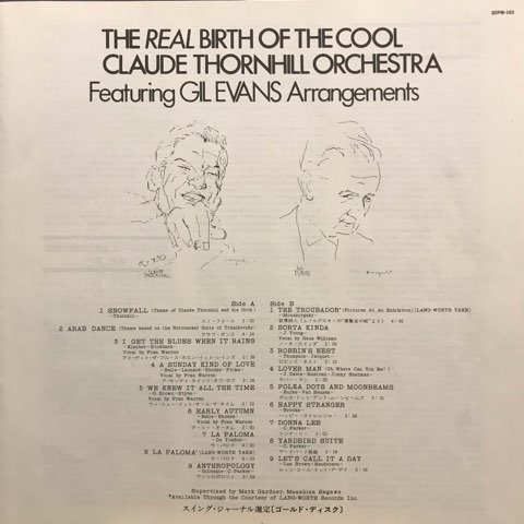 独自性ではDuke Ellingtonにも匹敵する、エーテル・サウンドと呼ばれる柔らかく曖昧で奇妙な響きのオーケストレーションを編み出し、Miles Davisにも絶大な影響を与えたビッグバンド/スウィング期の偉大なる奇人Claude Thornhill。彼が残した数々の楽曲の中でも特に重要な、エーテル・サウンドを確立した真の立役者といって良いGil Evansがアレンジした41〜47年の19曲を収めた国内オンリー編集盤。あの独特のアンサンブルによるソーンヒル・サウンドの代名詞的な「Snowfall」「There's A Small Hotel」「La Paloma」や当時最新のビ・バップをGil Evans流にオーケストラ・アレンジした「Anthropology」、エキゾチックに仕上げた「Arab Dance」など音響的実験が施された名曲の数々を収録。Claude Thornhill & Gill Evans関係の編集盤は色々でてますがこれがベストと言ってもいい素晴らしい内容です。