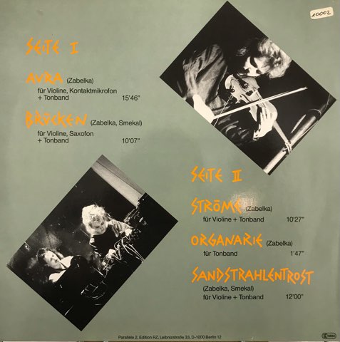 オーストリア人ヴァイオリニストMia Zabelkaとオーストリアにけるフリージャズのパイオニア的存在Giselher Smekalの87年共演盤。ヴァイオリン、サックスのインプロヴィゼーションや絶叫などをテープ・エディットしノイズからドローンまで展開する強烈なエクスペリメンタル作品。