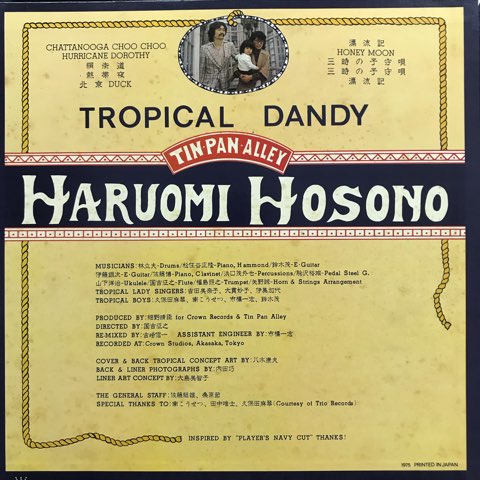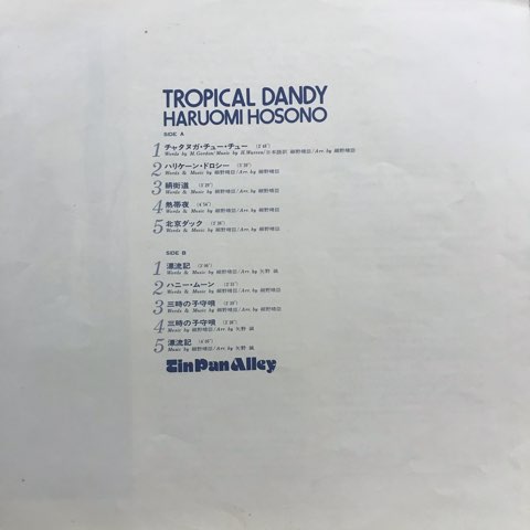 トロピカル三部作第一弾となる細野晴臣の75年ソロ・セカンド・アルバム。Glenn Millerの曲でCarmen Mirandaヴァージョン・カバー「チャタヌガ・チュー・チュー」、恐らくSlyからの影響であるリズム・ボックスも印象的な「ハリケーン・ドロシー」、南こうせつもコーラスで参加した無国籍な「絹街道」ほか、エキゾなアレンジが施された名曲だらけの大名盤!この作品はレコードででっかい音で聴きたいです。