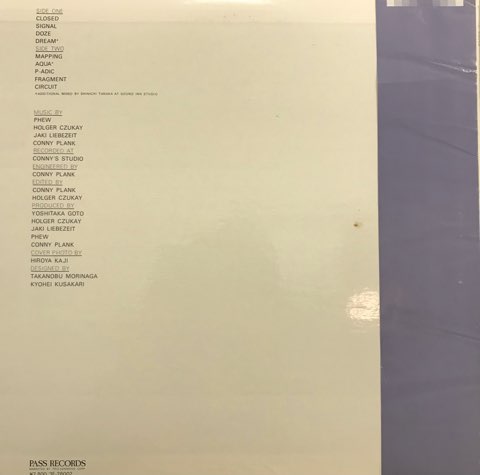 元アーント・サリーのPhewがドイツの奇才エンジニアConny PlankのスタジオConny's Studioに赴きConny Plank、CanのHolger Czukay、Jaki Liebezeitと共に制作しPass Recordsからリリースした81年ソロ・ファースト・アルバム。Conny Plankの数々のエンジニア・ワークの中でも最高の仕事の一つに挙げられるミニマルでスカスカな音空間に施された立体的で奇妙な音響処理がPhewの唯一無二のヴォーカル/ソングライティングをさらに別次元に引き上げた、同時代の世界のニューウェイヴ/ノーウェイヴ/NDWなどの尖った音楽を見渡しても匹敵するものがない日本が誇るジャパニーズ・ポスト・パンク傑作。