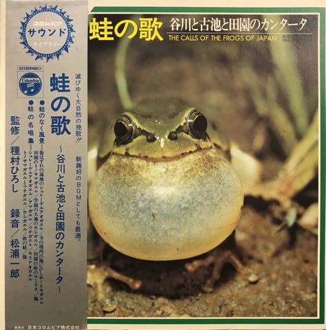 「愛犬のことば」「せみの季節 〜ステレオできく樹上のコンツェルト〜」「怪談 〜音で描く日本人の怨念の世界〜」など興味深いフィールド・レコーディング作品をリリースしている「コロムビア・サウンド・ライブラリー」シリーズからカエルの鳴き声を収録した一枚。アマガエル、ヒキガエル、ウシガエル、シュレーゲルアオガエルなど様々なカエルのシンフォニーが生み出す極上の天然ミニマル・ミュージック。カエルが鳴き出すまで何時間も待ったり胸の近くまで沼に浸かったりしながら録音したという甲斐あって臨場感たっぷりのステレオ録音も素晴らしいです。フリー・インプロヴィゼーションや電子音楽、現代音楽やノイズ・ミュージック好きなど、変わった音や聴いたことがない音を探している人は是非に!
