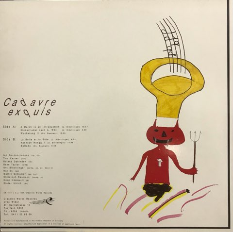 スイスのインプロ・ユニットCadavre Exquisの88年唯一作。A面は割とフリーキーな感じですが、B面にユニークなフニャフニャ・インプロを収録しておりそちらが面白いです。視聴は15分越えの「Kannsch Hongg ?」、ラストを締める「Ballade」から。