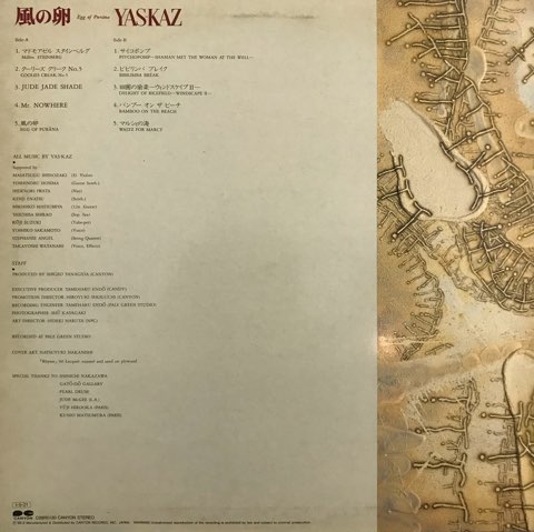 1960年代から阿部薫や坂田明、小杉武久らとフリージャズ方面で活動していた打楽器奏者/コンポーザー、佐藤康和がYas-Kaz名義でリリースした85年2nd。パーカッション、シンセサイザー、そして日本の古楽器や各種民族楽器なども駆使しワン&オンリーな音世界を創り上げたミニマル・エスノ・ニューエイジ傑作。