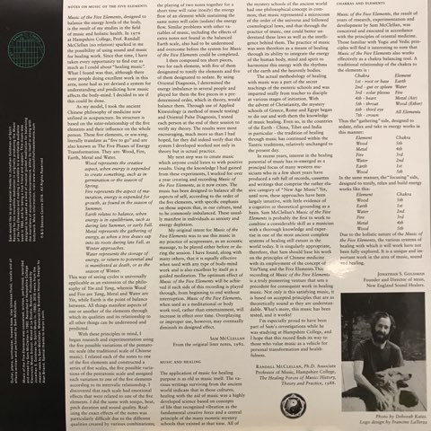 ハンプシャー大学で電子音楽を学んだ後、音楽療法への興味から古代中国医学に辿り着いたニューエイジ・ミュージシャンSam McClellanの82年作の2018年Reissue。中国伝統音楽のスケールと、音の人間のメンタルへの影響を研究した「ソニックヒーリング理論」を応用し製作されたという、ギター、ピアノ、シンセサイザー、中国民族楽器、様々な自然音などを用いたオリエンタルでディープ・メディテーティヴなニューエイジ作品。La Monte YoungやJohn Faheyの影響も感じさせます。