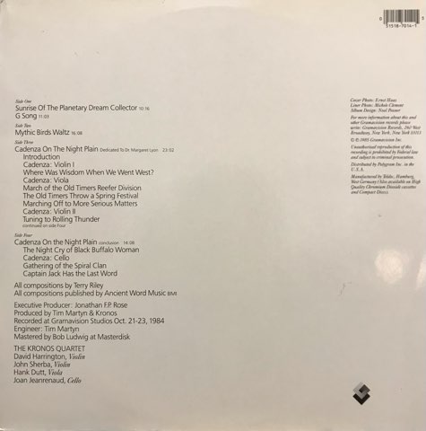 LP Terry Riley, The Kronos Quartet / Cadenza On The Night Plain And Other String Quartets