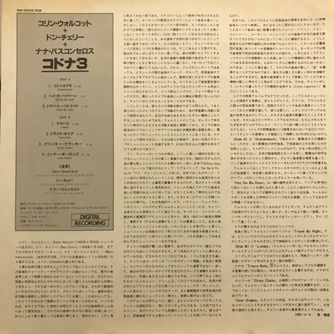 エスノ・ジャズ・グループOregonのCollin WalcottとDon Cherry、Nana Vascocelosという奇才三人によるユニットCodonaのラスト・アルバムとなるECM83年作。土着の民族音楽、ミニマル・ミュージックやドローン、アンビエントに日本の伝統音楽なども内包しさらにどこでもない感に磨きがかかった有終の美を飾る傑作!