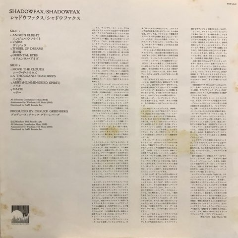 USニューエイジ・グループShadowfaxの名門Windham Hill第一作目となる82年2ndアルバム。オリエンタル・ミニマル・ニューエイジ「Ariki (Hummingbird Spirit)」、「Oriental Eyes」、ニューエイジ・アンビエント「Marie」など収録。内容良いです!