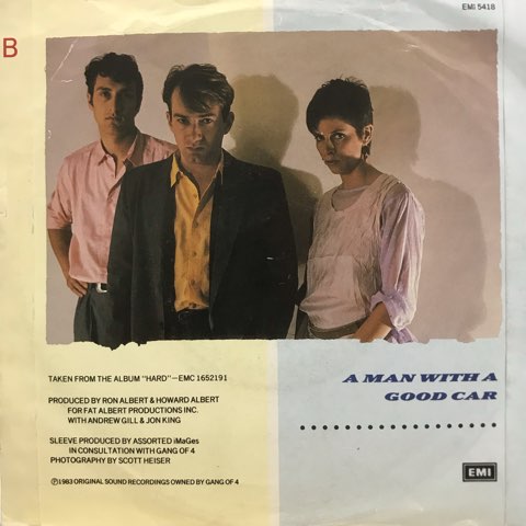 その鋭利なギターで衝撃を与えたUKのポスト・パンク・バンドGang Of Fourの83年4th『Hard』からカットされた7インチ・シングル・レコード。初期の尖った感じは無くなってますがAndy Gillのディスコ方面に進化したカッティング・ギターが鬼クール!ニューウェイヴ・ディスコ名曲!