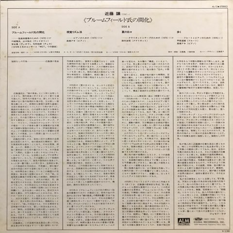 John Cage本の翻訳も手掛ける世界的な現代音楽家、近藤譲の76年作。寺の鐘、小鳥の鳴声、子どもの言葉遊びなどのフィールドレコーディングと、持続音的なクラリネット、セミの鳴き声を加工したホワイト・ノイズが入り乱れるミュージック・コンクレート作品「夏の日々」、強烈な弦楽四重奏曲「ブルームフィールド氏の間化」、5楽器によるアンサンブル作品をピアノ・ソロのために編曲した高橋アキ演奏による「視覚リズム法」を収めた日本現代音楽名盤!