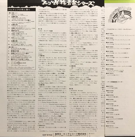 2018年に米SUBLIME FREQUENCIESからアンソロジーもリリースされた、フィールド録音家にしてラジオプロデューサー、映像作家、詩人、民族音楽学者でもあるDeben Bhattacharyaのプロデュースによるブルガリア民族音楽の現地録音盤をキングの「アーゴ民族音楽シリーズ」としてライセンス・リリースした75年作。何と言ってもあのブルガリアン・ヴォイスの原型といえる、独唱でも神秘的な響きの「収穫の歌 風よ吹くな」、不協和で不思議なハーモニーの重唱「収穫の歌 羊飼いは森のそばで」といった土着の民謡が素晴らしすぎます!ほかにもブルガリアのバグパイプ、ガイダによる変拍子の旋律とドローンが聴ける「ダイチョヴァとコネーシュタ踊り」など。