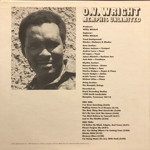 サザン・ソウル名シンガーO.V. WrightがHi RecordsオーナーWillie Mitchellのプロデュースでハイ・リズム・セクションをバックに制作した73年作。最高に気持ち良いメンフィス・サウンドとO.V. Wrightのヴォーカルがガッチリハマったソウル名盤。