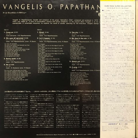 ギリシャのシンセサイザー奏者/作曲家VangelisがまだVangelis O. Papathanassiou名義だった73年初期作品。文句なしにカッコいいバレアリック・クラシック「Let It Happen」、ニューエイジ・トラック「My Face In The Rain」、エスノ・メディテーティヴな「We Are All Uprooted」など素晴らしいです。