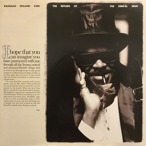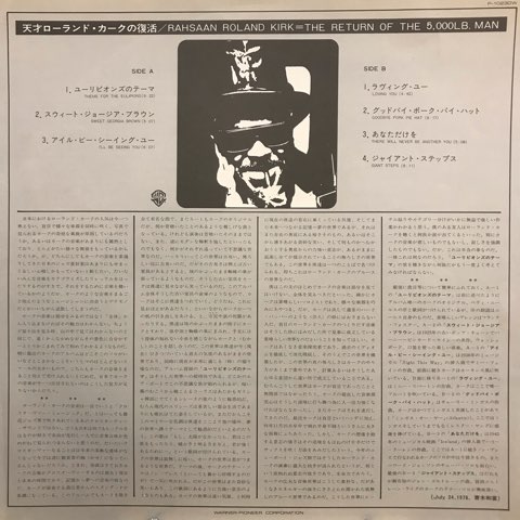 複数のリード楽器を同時に操る盲目の鬼才ジャズ・ミュージシャンRolan Kirkがほぼワン・ホーンで制作した「天才ローランド・カークの復活 」の邦題で知られる75年作。時期、タイトル的に脳卒中で倒れた後にリリースされたように思いますが、実際は倒れる前に録音されてます。ジャズ、ソウル、ファンク、ブルースなんかの黒人音楽が混然一体となり、美しさや哀しみや優しさ、楽しさに寂しさなどあらゆる感情が詰め込まれた、Roalnd Kirkという音楽を聴いているような気にさせられる傑作!様々なミュージシャンにフェイバリットに挙げられることも多い作品です。この鳥の音やカミナリの音も入ったMinnie Riperton「Loving You」のカバーは死の間際に聴きたい曲のひとつ。