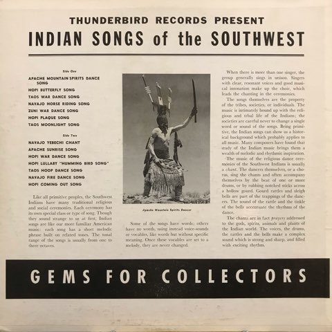 アメリカの奇人Harry Smithをも魅了した、かつては〈インディアン〉と呼ばれていたアメリカ先住民族のアパッチ族やホピ族、ズニ族など様々な部族の音楽を収録した一枚。あの独特の発声方法も聴ける、人声と打楽器のみによるプリミティヴでトリッピーな民族音楽傑作。強烈です!