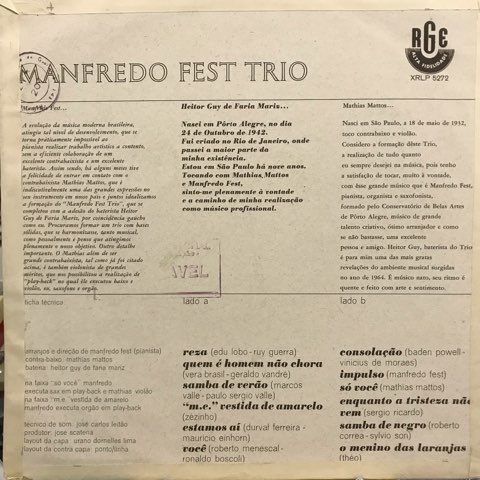 ブラジル・サンパウロ出身の鍵盤奏者Manfredo FestがTrioで録音した65年作。Manfredo Festの超絶ピアノが琴線にズバズバと刺さりまくってくるブラジリアン・ジャズ/ジャズ・サンバ金字塔。マジでカッコ良すぎです!