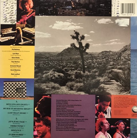 Pat Methenyが永らく所属していたECMを離れGeffinに移籍後初のリリースとなる87年作。彼の数ある名作の中でもブラジル音楽、特にミナスの影響が色濃い最高傑作のうちの一つ。1曲目「Minuano (Six Eight)」の素晴らしくフローティングなイントロからブラジリアン・フィーリングに溢れた中盤を経て、89年の超名曲Steve Reich「Electric Counterpoint」に繋がるミニマルなフレーズに入る瞬間は何度聴いても鳥肌モノ。エモーショナルなメロディー、コーラスがサウダージを誘う「Last Train Home」など全曲名曲の近年さらに再評価されている時代を超えた名盤。